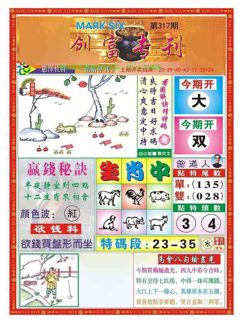 317期:正版创富网:本期五九定有尾,选出二三是吉数